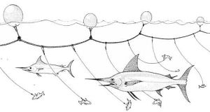 - ↑ This practice relies on long fishing lines equipped with multiple hooks which is set float and drift in the water. This method creates by-catch and kills unwanted species. Lines can often break, float about and unintendedly hurt fish: this is known as “ghost fishing”.