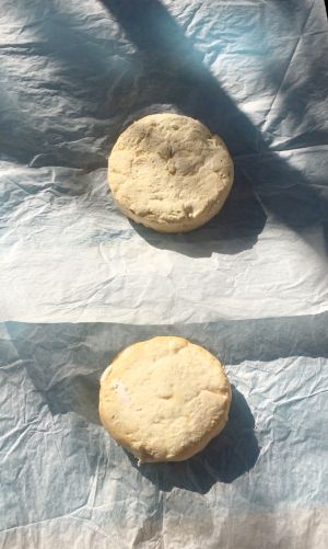 Vexin full cow milk, unpasteurized, from Launay farm[16]. | No lactic ferments. Attempt of starter culture transplantation from blue cheese (Penicillium roqueforti) on the squarish ones. | Powdered animal rennet[5] in heated milk (30-35°C), 24h curdling. | Homemade molds from drilled plastic containers where the cheeses spent a few days without being pressed. | - Turned daily the first week. - 3 days outside in aerated box before dry salting on both faces. - Brie cheese (Penicillium camemberti) rind added on the round ones, then all sealed in aluminium paper. - 1 month ripening in fridge for 1 round sample. 3 months for the others. |